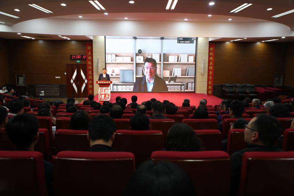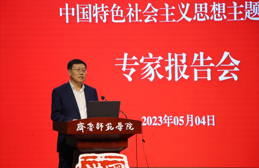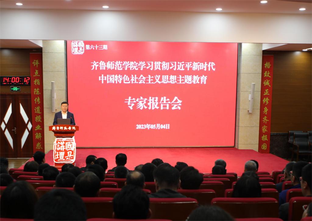 5月4日,“国是讲坛”第六十三期暨主题教育读书班专家辅导报告在齐鲁师范学院章丘校区学术报告厅举办。天津大学马克思主义学院院长、博士生导师颜晓峰教授应邀作题为《习近平新时代中国特色社会主义思想的科学体系、核心要义、实践要求》的辅导报告。党委书记林松柏主持报告会,学校领导班子成员、全体中层干部、各党支部书记、全体思政课教师及学生代表聆听报告。