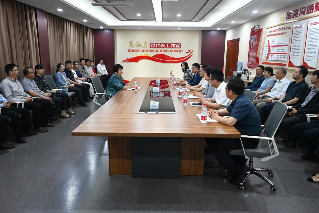 在高淑贞党代表工作室,党的二十大代表、三涧溪村党委书记高淑贞为大家作了一场精彩报告,讲述了三涧溪村发展故事,并进行座谈交流。高淑贞从“学思想”开始讲起,分享了自己如何在学习、宣讲、实践党的创新理论过程中,运用扎实、灵活的工作方法、老百姓喜闻乐见的语言和形式,传党声、察民情、解民忧、促发展,带领村民们一次次破解难题,以党建引领乡村振兴,解放思想、敢闯敢试、抢抓机遇,实现组织振兴、产业振兴、生态振兴、人才振兴、文化振兴的辉煌成绩。