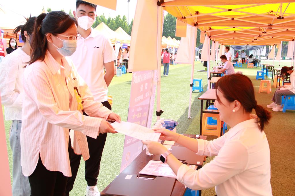为深入学习贯彻党的二十大精神,扎实开展学习贯彻习近平新时代中国特色社会主义思想主题教育,落实党中央、国务院关于高校毕业生就业工作决策部署和省委省政府工作要求,用好校园招聘主渠道,紧抓百日冲刺关键期,促进2023届毕业生实现高质量充分就业,5月26日,由山东省人力资源和社会保障厅主办,齐鲁师范学院承办的“职引未来·就选山东”2023年高校毕业生省级集中招聘活动女性毕业生专场暨齐鲁师范学院2023届毕业生精准对接供需见面会在章丘校区体育场成功举办。