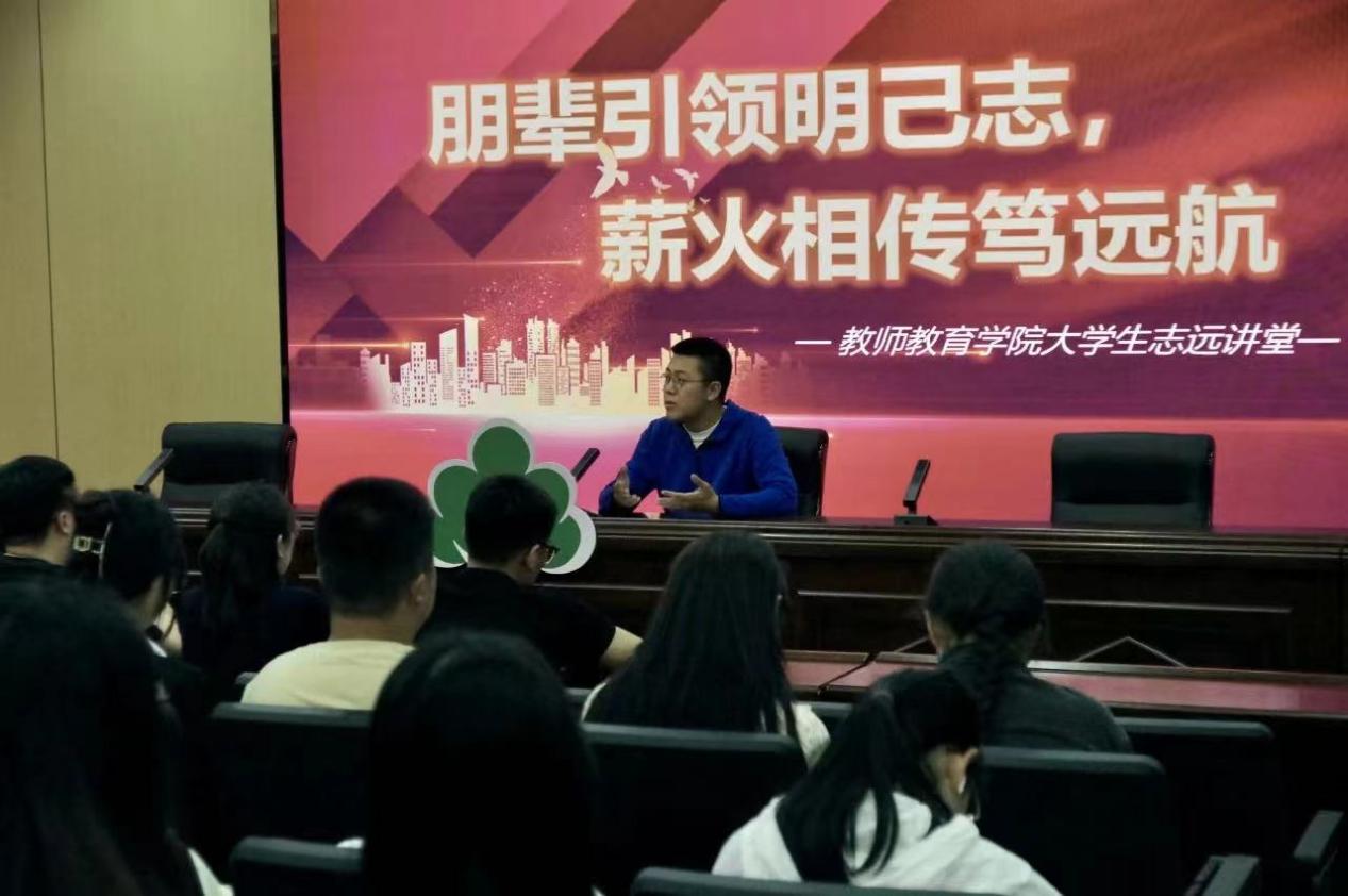 教师教育学院学生第一党支部书记李炜琛、学生第二党支部书记王亚东依托学院“大学生志远讲堂”,分别以《党的组织制度和党纪党风》和《中国式现代化是中国共产党领导的社会主义现代化》为题,对全体学生党员进行了党性教育和理论宣讲,鼓励同学们要牢记习近平总书记的嘱托,肩负历史使命,坚定前进信心,立大志、明大德、成大才、担大任,以思想自觉带动行动自觉,积极发挥好学生党员的先锋模范作用,让党旗在广大青年学生中高高飘扬。