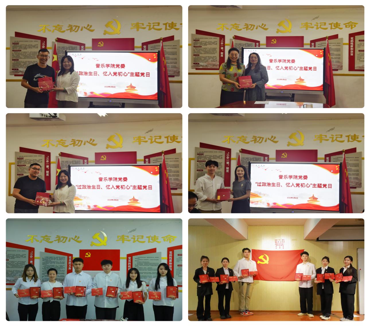为深入开展学习贯彻习近平新时代中国特色社会主义思想主题教育,坚持以政治建设为统领,强化党员使命意识,促进基层党组织凝心聚力,近日,音乐学院各党支部开展为党员过“政治生日”主题党日活动,为6月份入党的党员集体过政治生日。