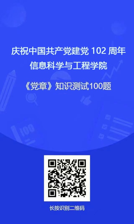 为了更好地开展好主题教育,引领党员教师们深入进行理论学习,主题党日活动中,党员们充分发挥专业优势,制作了《庆祝中国共产党建党102周年——信息科学与工程学院<党章>知识测试100题》小程序,全体党员积极参与、踊跃答题,学习成效显著。