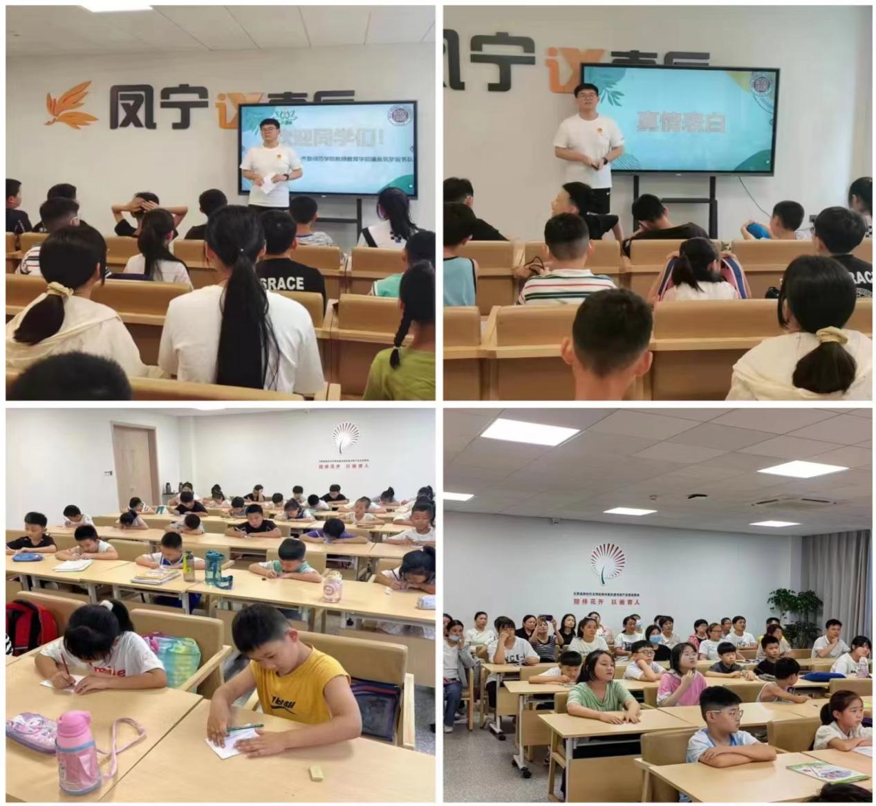 曦泉筑梦服务队开设“防溺水”“暑期青少年防校园暴力”主题教育课程,引领学生了解并掌握防溺水的知识和技能,认识到校园暴力的危害,为学生的身心健康和稳定发展奠定基础。通过志愿者的讲解与PPT演示,学生们懂得了如何预防各种危险,学会了自护自救的方法。学生们还积极展示了自己设计的防溺水海报,在“我想对‘你’说”活动上真诚表达了对校园施暴者和受暴者、旁观者想说的话。通过对安全教育特色课程的学习,学生们明白生命是唯一的、宝贵的,必须筑起思想、行为和生命的安全长城,也明白了同学之间应互帮互助、互相团结。